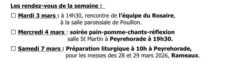 Samedi 28 février à 10h à Peyrehorade, préparation liturgique