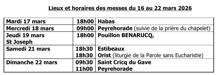 - La paroisse SAINTE MARIE des ARRIGANS, avec les relais (villages) de Cagnotte, Estibeaux, Gaas, Habas, Misson, Mouscardès, Ossages et Pouillon.