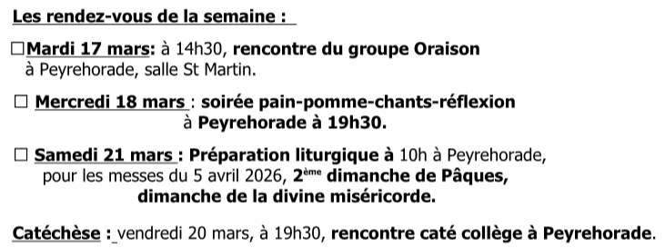 Samedi 21 mars à 10h à Peyrehorade, préparation liturgique