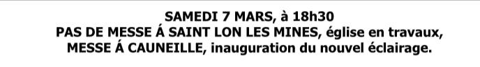 Pas de messe à St Lon les Mines le 7 mars, cause travaux!