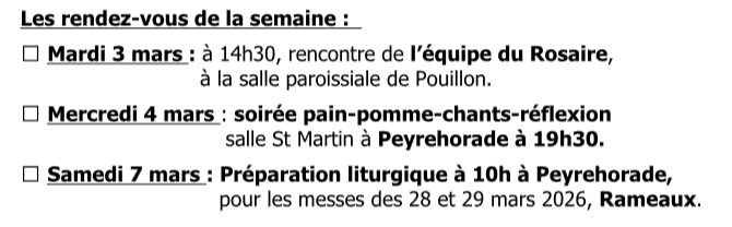 Samedi 7 mars à 10h à Peyrehorade, préparation liturgique