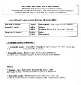 - Mercis aux bénévoles de nos paroisses, le 23 janvier pour Notre Dame du Pays d'Orthe, le 30 janvier pour Sainte Marie des Arrigans. Pour plus d'informations, cliquez ici!