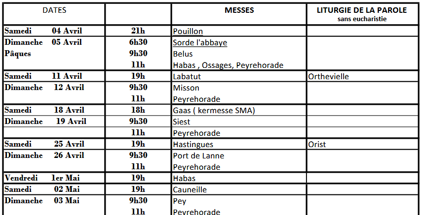 Horaires des messes